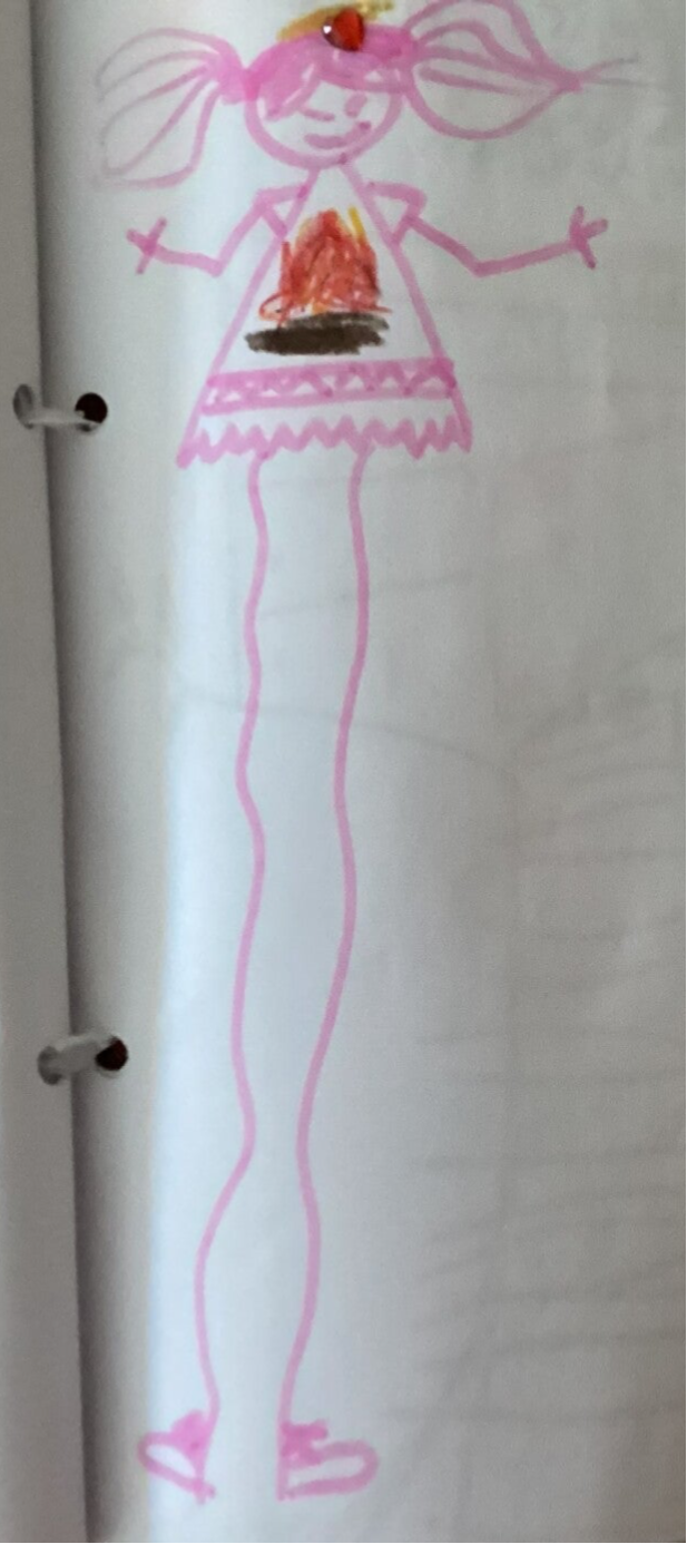 Sie hatte auf ihrem Kleid ein Feuer und so schöne lange Beine und eine Herzchenspange.
